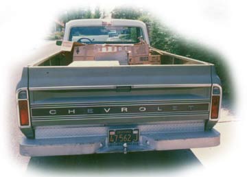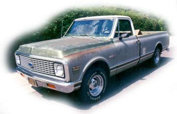 Ron Hilbert's 1971 Chevy C-10 Pickup Truck ProjectI am the second owner of this truck. It was given to me by my father-in law in 1990, so it is still in the family. Here are some pictures of the truck with its original white/medium olive two tone paint job in 1991. When I took possession of the truck it had an old metal insulated camper shell on it. I had replaced the steering wheel, distributor, (with an HEI electronic distributor) and put new tires and American Racing chrome wheels on it. The truck was built in Fremont California and had no dents or bondo on it, just one scratch. My father-in-law (Elmo Williams) had purchased the truck after he retired from contracting. Elmo passed away in 1994. I knew there was a cool truck in there just waiting to get out, but I didn't know how long it would take...