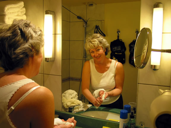 Paris, France - In the Mercure Hotel doing Laundry