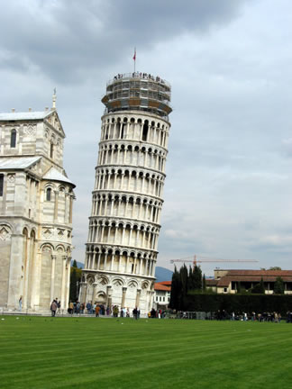 The leaning tower is 180 feet high and 16 feet out of the perpendicular.