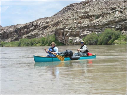 Joe and Peggy in their 15' Dagger canoe...They didn't have much freeboard so Joe used his outriggers.